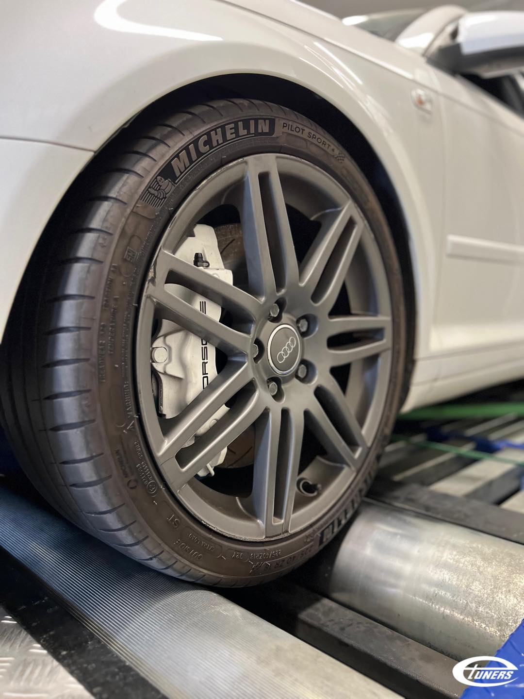 This Audi A3 8P started life with a BWA motor producing 200bhp. Which is the same engine code used in the VW Golf 5 GTi. To increase engine performance above and beyond its stage2 capabilities the pistons and connecting rods were upgraded. So was the fuel system and the turbocharger, together with a full exhaust, intercooler and clutch.