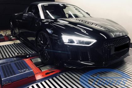 Upgrading this Audi R8 5.2FSI V10 with an Akrapovic exhaust and an Etuners Stage2 ECU remap brought very good power gains. Mapping was done for 98RON fuel. Peak power increased from 256wkw stock to 293wkw with midrange gains of +75wkw. With the extra power and torque combined with its new AKRAPOVIC sound track, this R8 is exhilarating to drive!