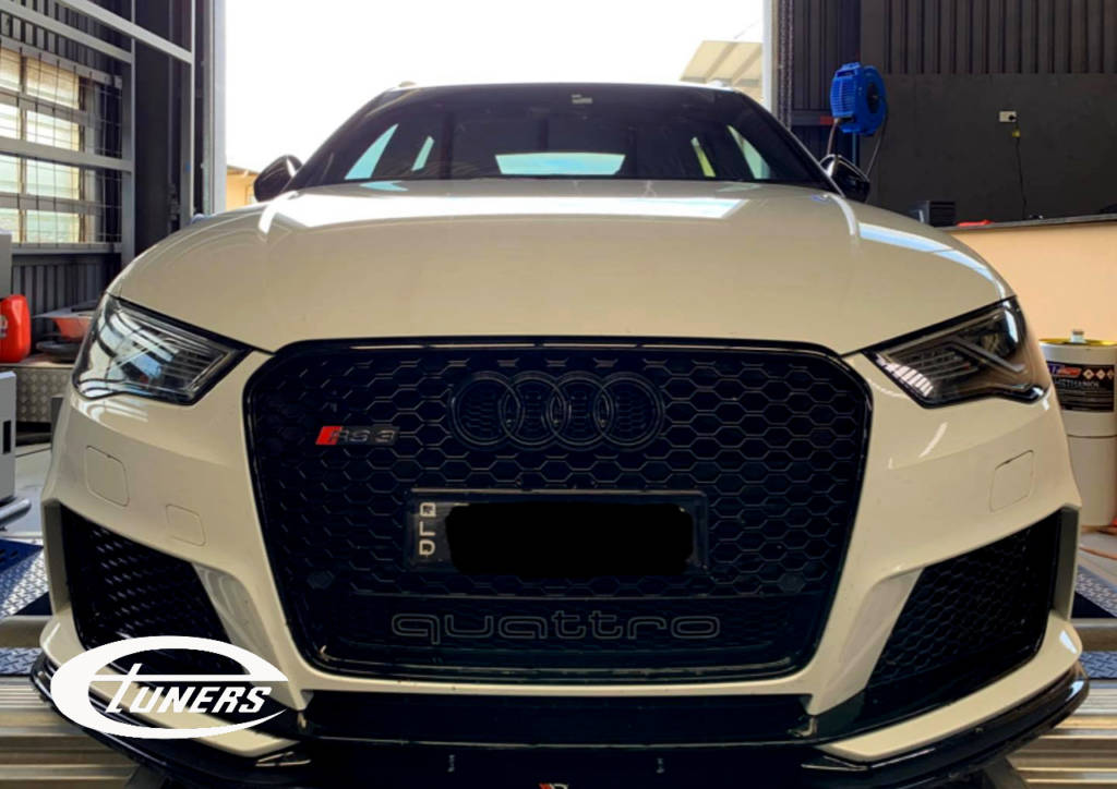 Adam’s RS3 was already running our Etuners Stage2 for E85 tune that produced 310awkw and is a quick car but wanted more. So he acquired an RPC850 turbo kit, that features a Xona turbocharger, along with supporting mods and got to work.