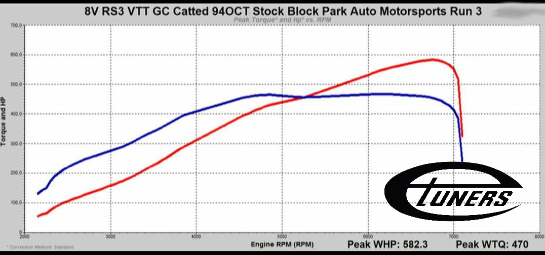 Audi RS3 8V.2 2.5TFSI MY2018, DAZA engine code, making 582WHP with a stock motor on pump gas with a @vargasturbo GC and @e_tuners Stage 3 engine and gearbox software. How to get there:
