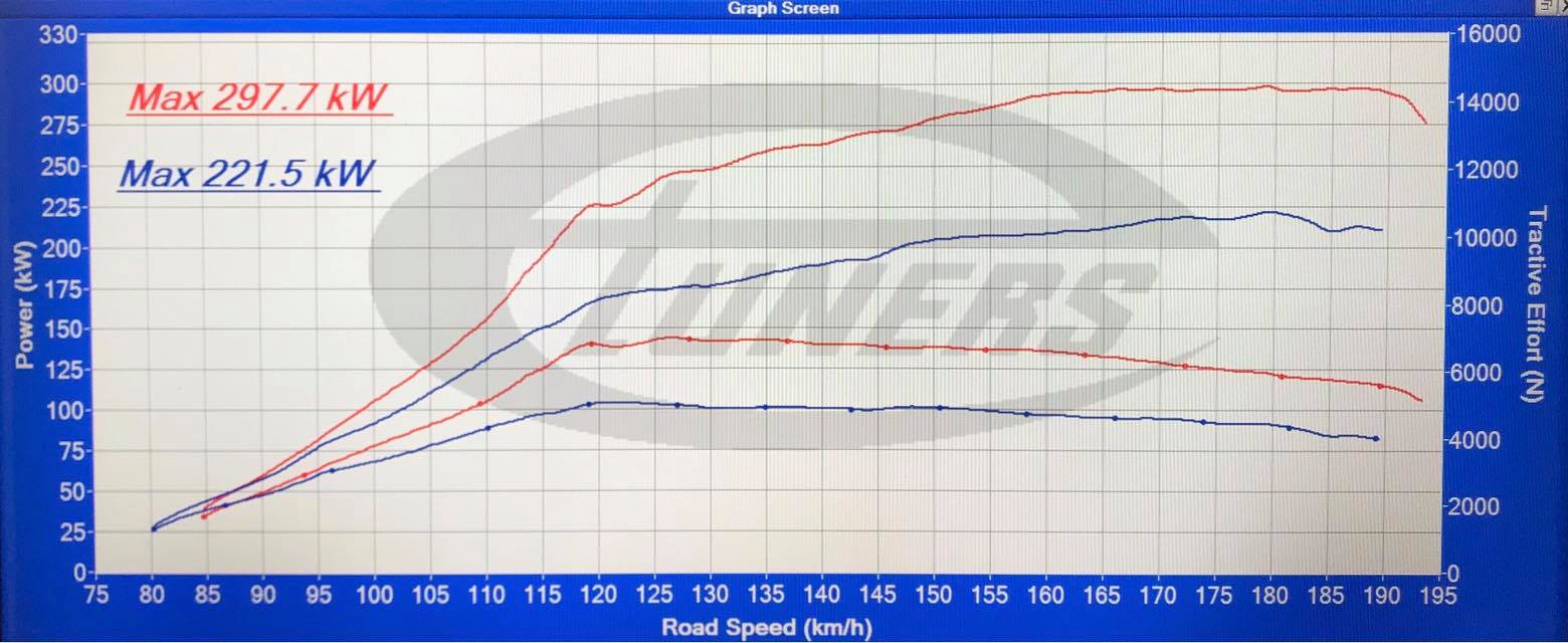 With upgraded hardware installed and custom Etuners ECU and DSG calibrated peak power increased to 297kw measured @ all 4 wheels.