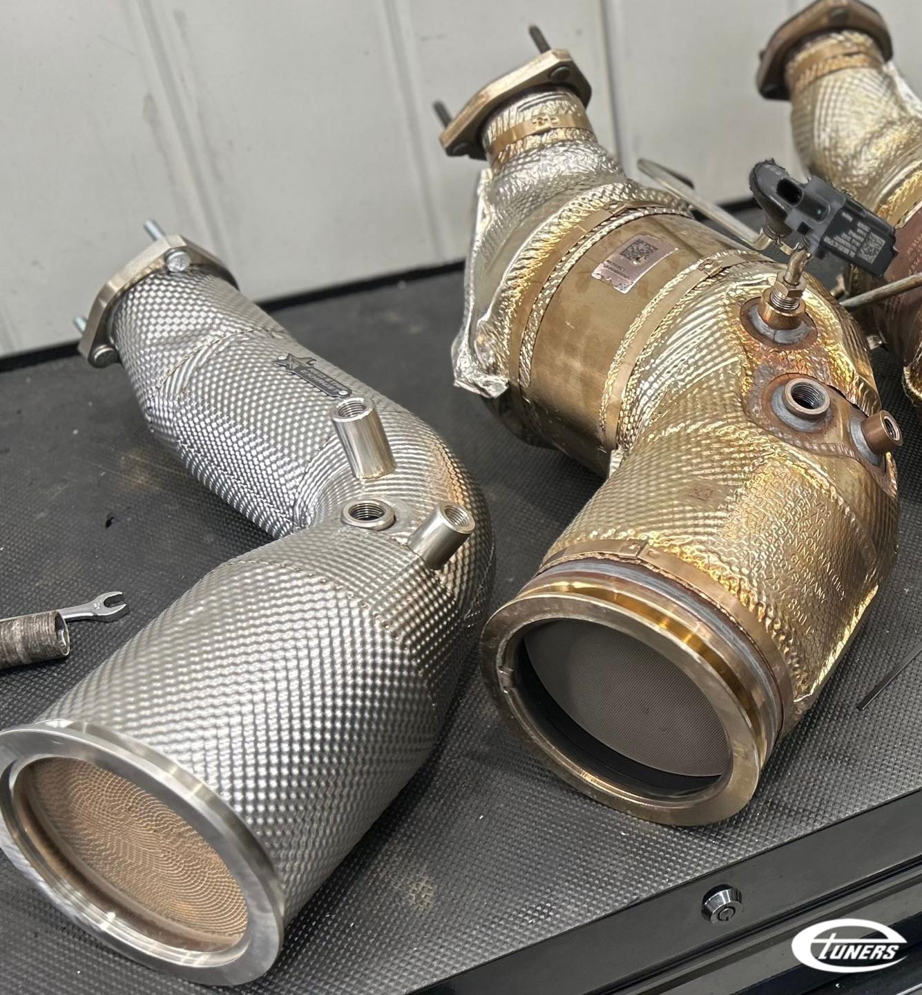 REDSTAR EXHAUST heat shielded downpipes with HJS cats