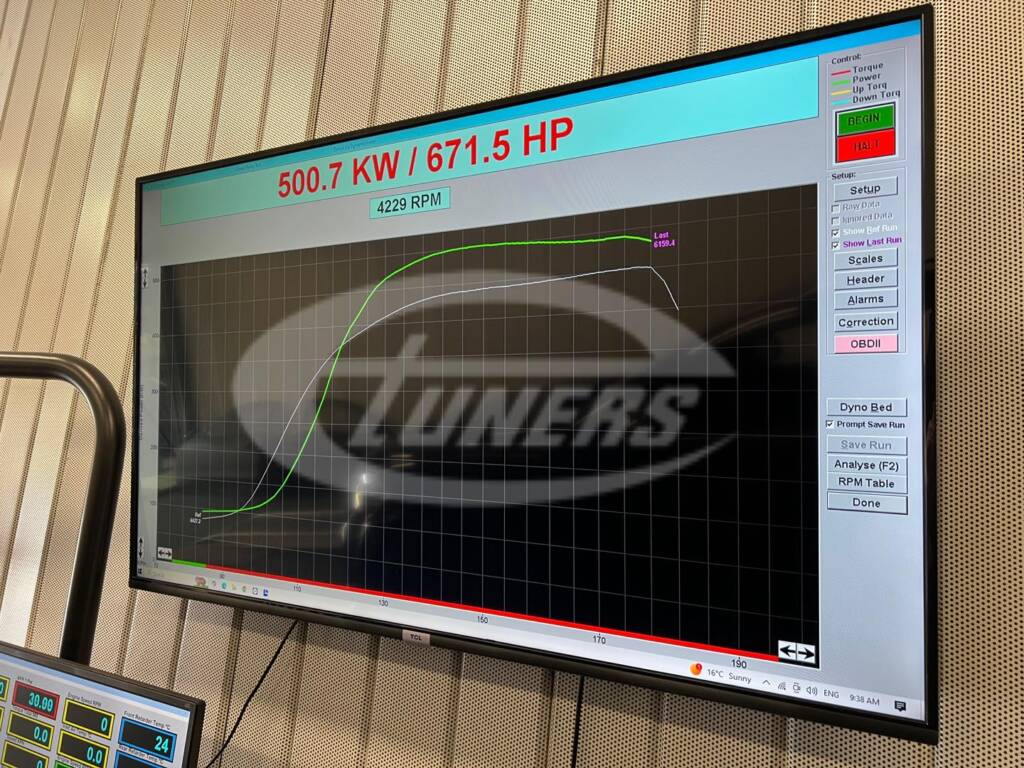 We recently tuned this RSQ8 maxing out the stock turbos with power peaking at 450wkw. After installing a set of Pure turbos and re tune power increased to an impressive 500wkw.