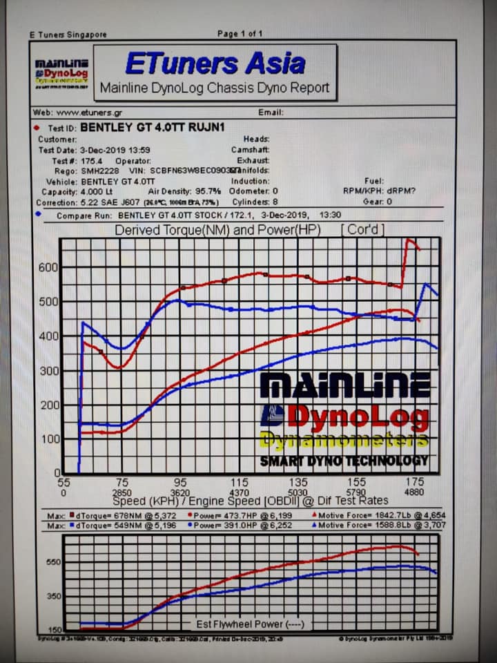The new Bentley Continental utilises the very powerful 4.0 V8 engine. The very same engine is used on the Audi RS6 C7, which explains the massive power gains with just an #Etuners Stage1 ECU remap on 98RON. A very big thank you to the guys at our new development center for Asia in Singapore.