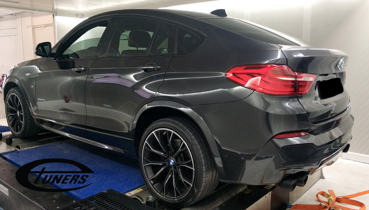 According to BMW, this X4 F26 produces 190hp, engine power. On dyno it was measured 192hp on stock software. With an #Etuners Stage1 ECU remap, power increased to 222hp. Because of the automatic gearbox, it is not possible to see the true maximum torque gains after the remap on dyno: it kicks down if pressed fully at low rpm, so the dyno operator needs to ease in throttle until 2500rpm.