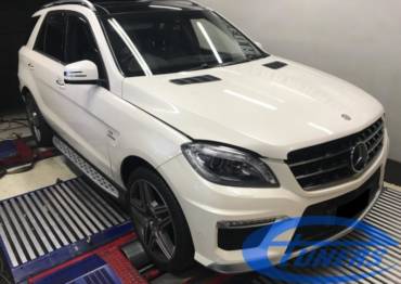 Mercedes ML63 AMG MY2008-Stage1 98ron The superb M156 engine is not only found in the rear wheel drive C63 but also the ML63 4×4 with a power output of 375kw @ engine. With an Etuners stage 1 file loaded power increased to 285kw @ all 4 wheels up from a stock of 259wkw with vastly