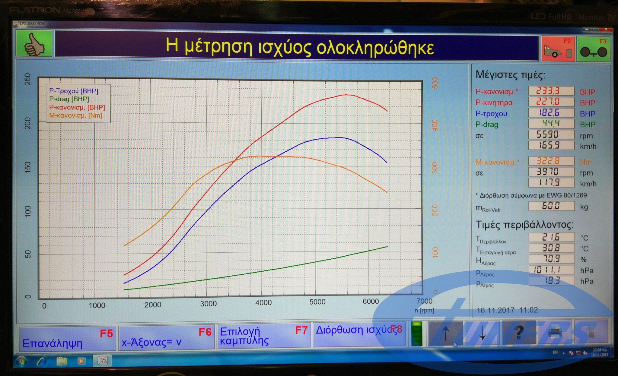 - Maximum flywheel torque: 323 Nm (measured stock with the upgraded parts as 270Nm), gains 53Nm