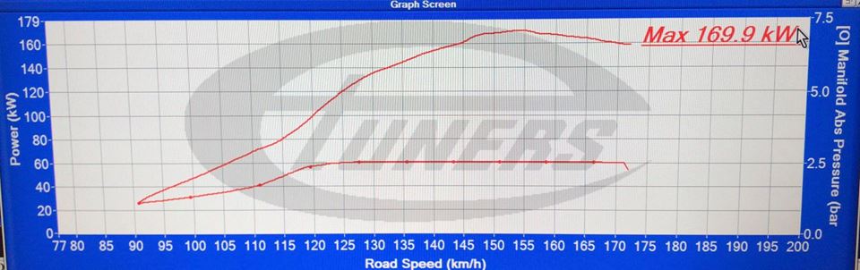 On 19.5psi the 1.4l engine made 152kw at the wheels. Today we calibrated a new file for 21.5 psi increasing power to 169.9kw @ wheels!