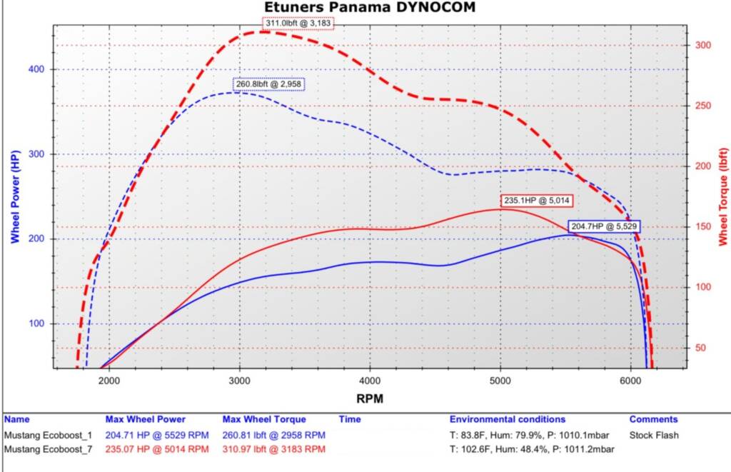 With our expert software calibration skills and one simple bolt on we were able to match the torque from the V8 car, very early on, and hold it for a broad powerband, making this Ecoboost Mustang more enjoyable on the road. Thanks to the owner for his trust on us!