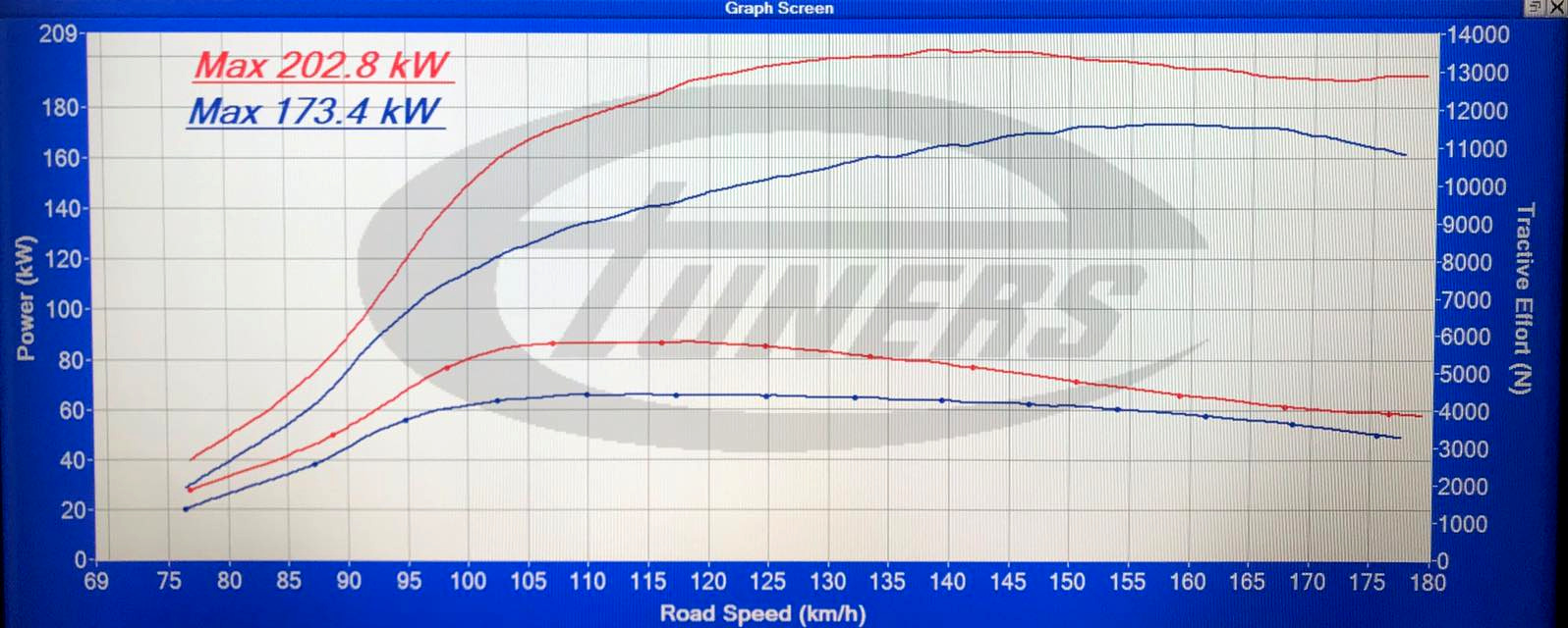 - Maximum wheel power: 202.8wKW (measured 173.4wKW stock)