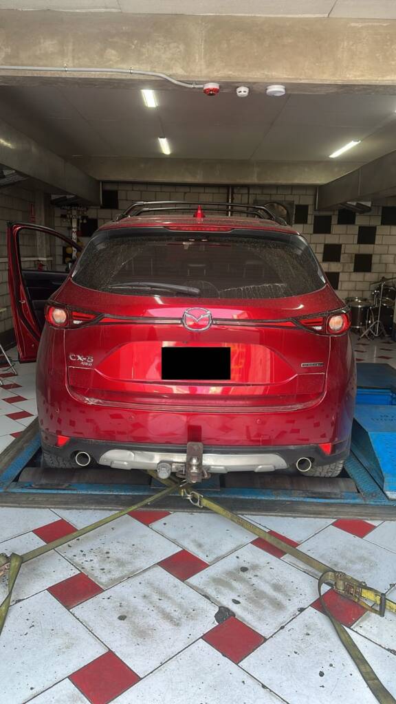 Mazda’s Skyactiv G engines may be naturally aspirated, but they are also very tunable. This red Mazda CX5, with All-Wheel-Drive came to us with an upgraded air filter, upgraded headers and exhaust. On our Mustang dyno and stock software it measured 130whp/134lb-ft.