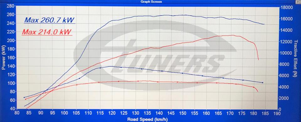 - Maximum power: 260wkw (measured stock 214wkw), gains 46wkw