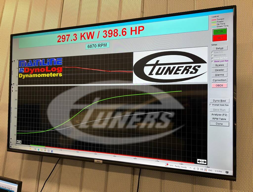 - Maximum power at the wheels, measured in 4WD: 398.6whp / 297.3wkw