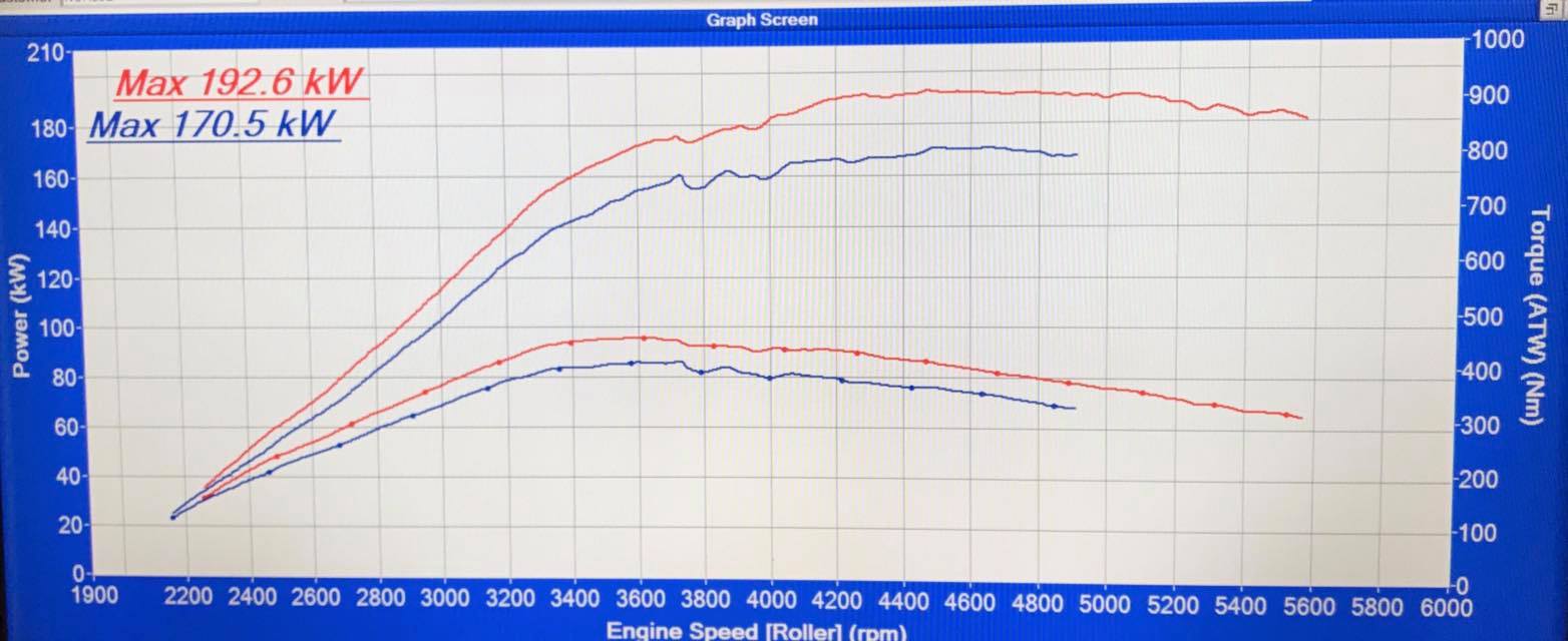- Maximum wheel horsepower: 192 kw /261 hp (measured stock as 170kw)
