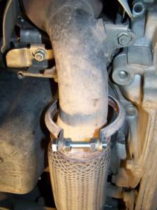 • Undo the retaining clip from the downpipe to the back of the exhaust