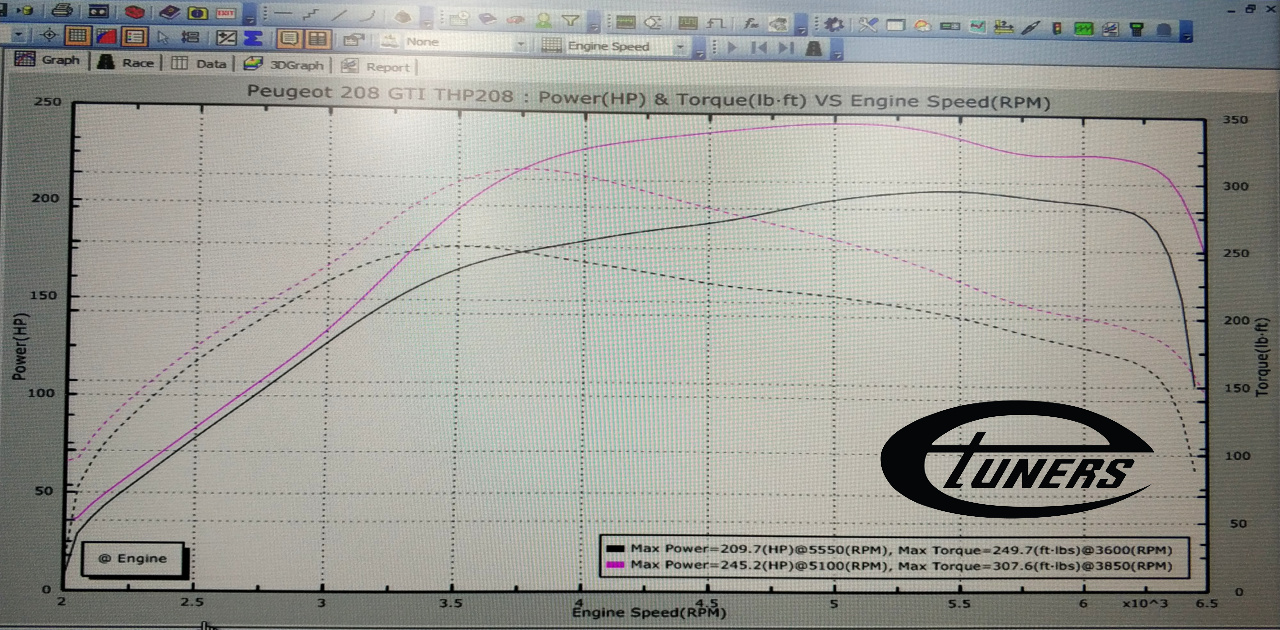 Starting from 209.7hp with the stock map, the 208 made 245hp with fantastic torque gains.