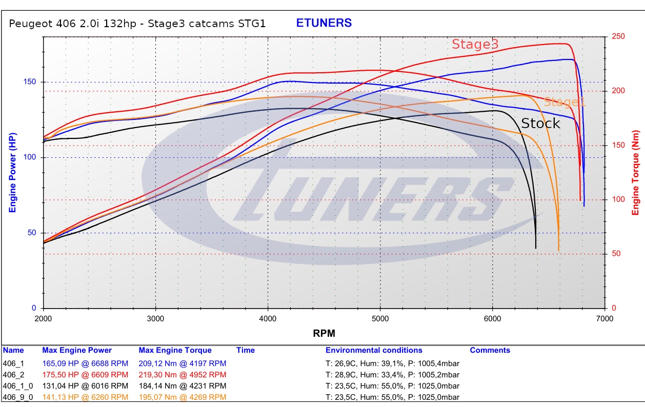 Peugeot 406 2.0i 132hp – #Etuners Stage3 for Catcams STG1