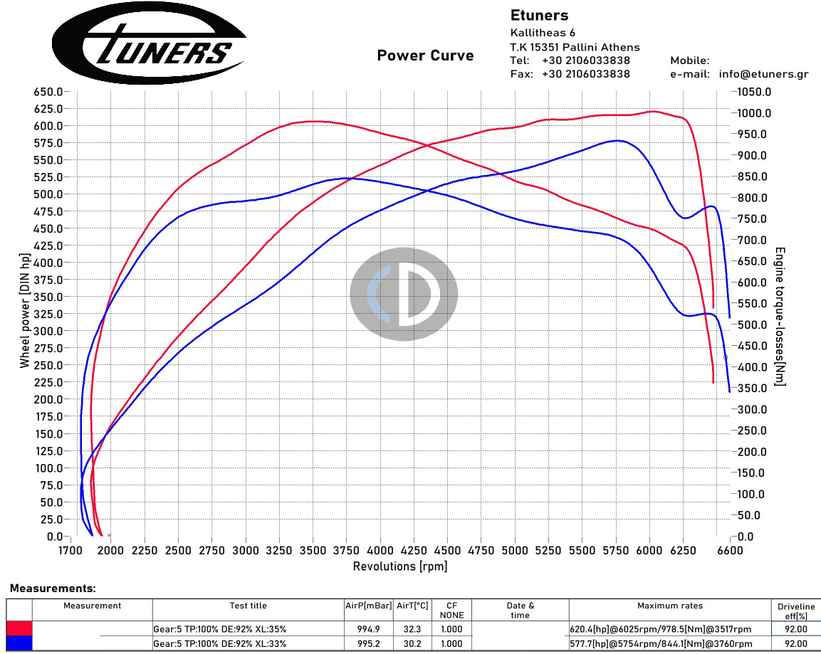 On dyno, it measured 577whp on stock mapping with upgraded downpipes and 98RON fuel. We developed a custom #Etuners Stage2 engine tune and gearbox tune to improve performance. After the remap, power went up to 620whp with big torque gains.