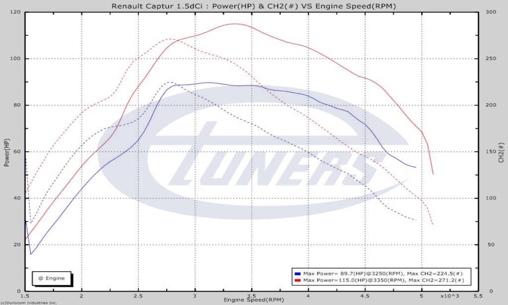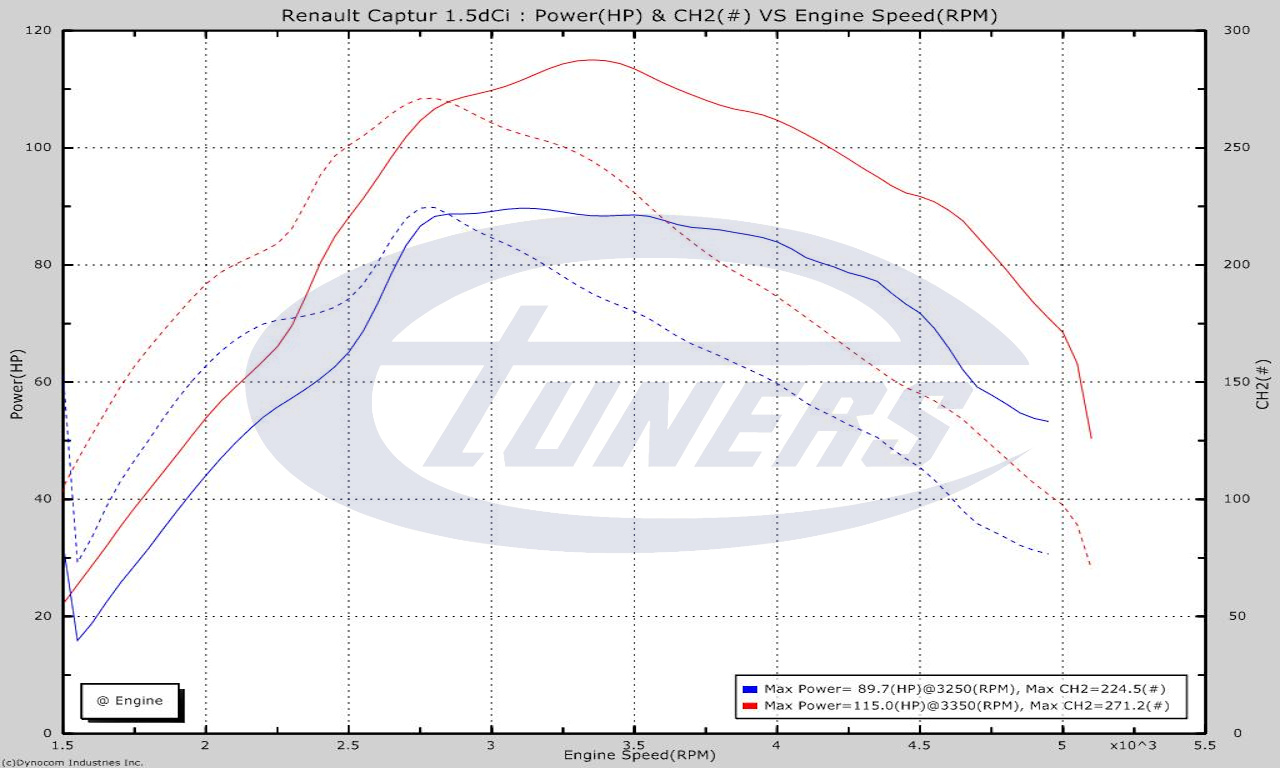 - Maximum engine power: 115hp (measured 89.7hp stock)