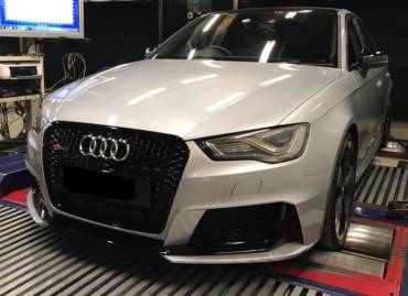 Audi RS3 8V.1 stage 2 We supplied and installed a custom hi flow downpipe and loaded Etuners stage 2 ECU and TCU calibration files. Peak power increased to 261kw @ all 4 wheels, up from 214kw as measured stock. With a strong flat power curve through the entire rev range this is a cost effective...