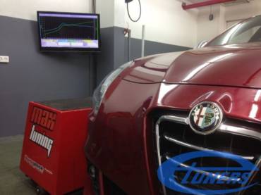 A big turbo kit on a stock QV engine? Why not! The settings are reasonable for the connecting rods, this way the engine can withstand the abuse and make good power. By limiting overboost and aiming for linearity and better top end boost, the Giulietta QV produces a lot of power with this...