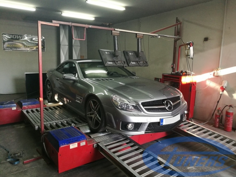 Mercedes SL63 AMG One of our favourite engines to tune and hear roar in the dyno room: the 6.2L V8 from AMG. A few days ago we had the pleasure to tune this handmade engine in a Mercedes SL63 AMG with an Etuners Stage 1 on 98RON fuel. The car came bone stock and produced 466hp...