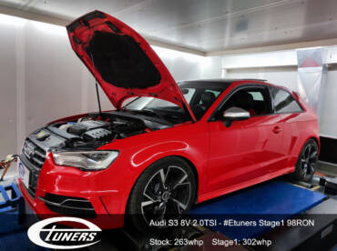 Audi S3 8V 2.0TFSI DSG – #Etuners Stage1 98RON If you are looking for a car that can be fast and comfortable, loud or silent, all with the press of a button. But does not attract attention and is very efficient to drive even as a daily. Look no further. The Audi S3 8V