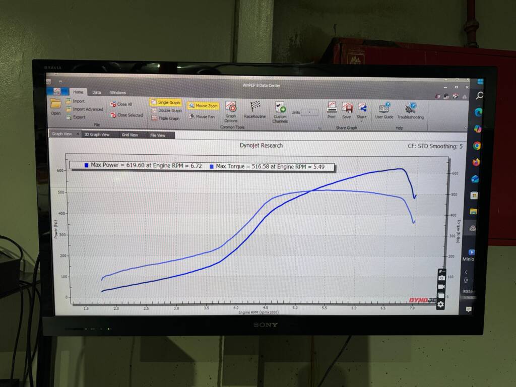 - Maximum power at the wheels: 620whp