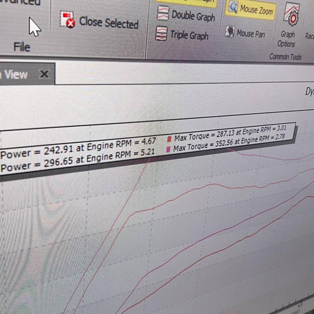 The car was measured on stock software with upgraded parts 242WHP – 287 TORQUE. After our #Etuners STAGE 2 custom engine tune power went up to 296WHP. Torque went up to 352 . Final gains were 54 WHP AND 65 TORQUE over stock. More to come after installing intercooler and turbo pipes.